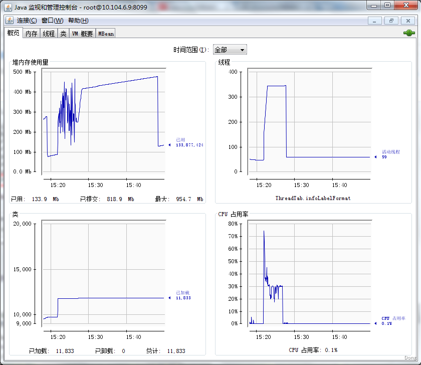 4)连接成功后,即可使用JConsole监测JVM。